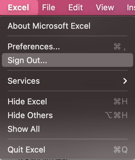 なので↓のようにエクセルから一旦サインアウトし、再ログインをすることで私の場合事象は解決しました。